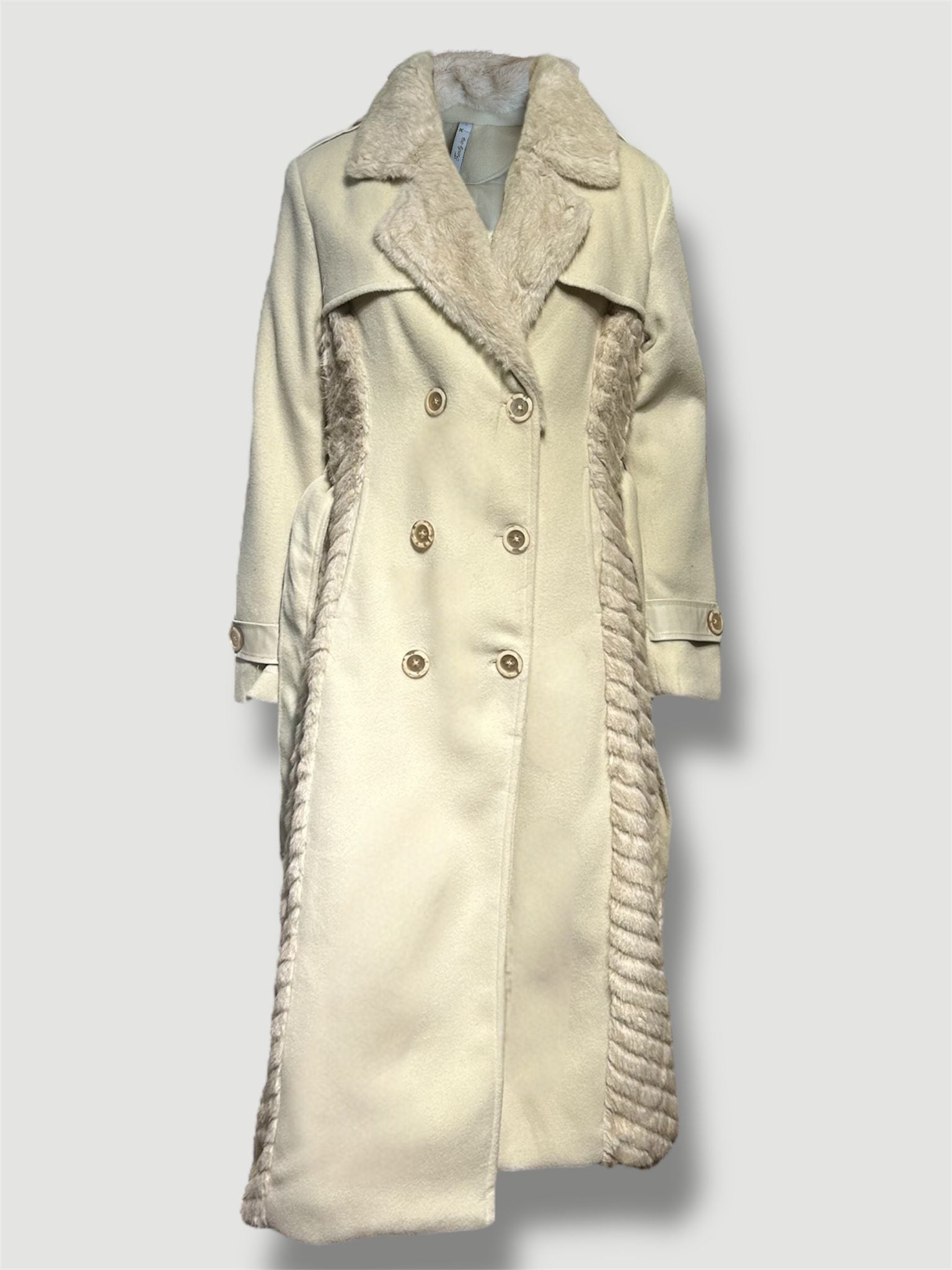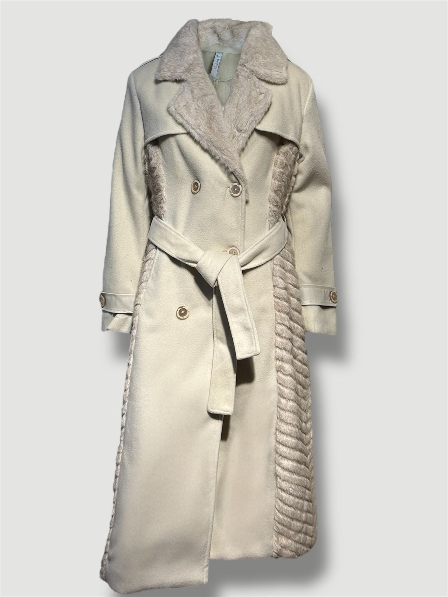Abrigo MATTEA largo de paño y pelo beige