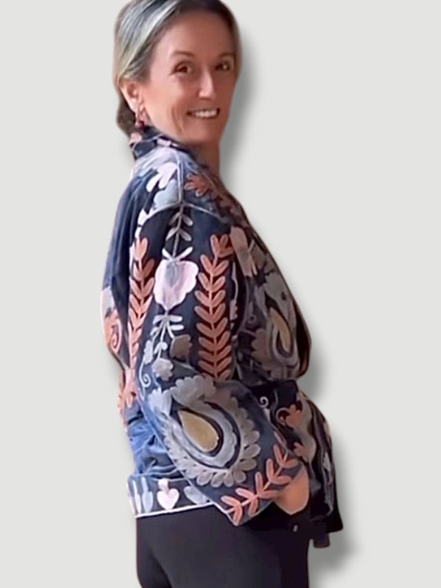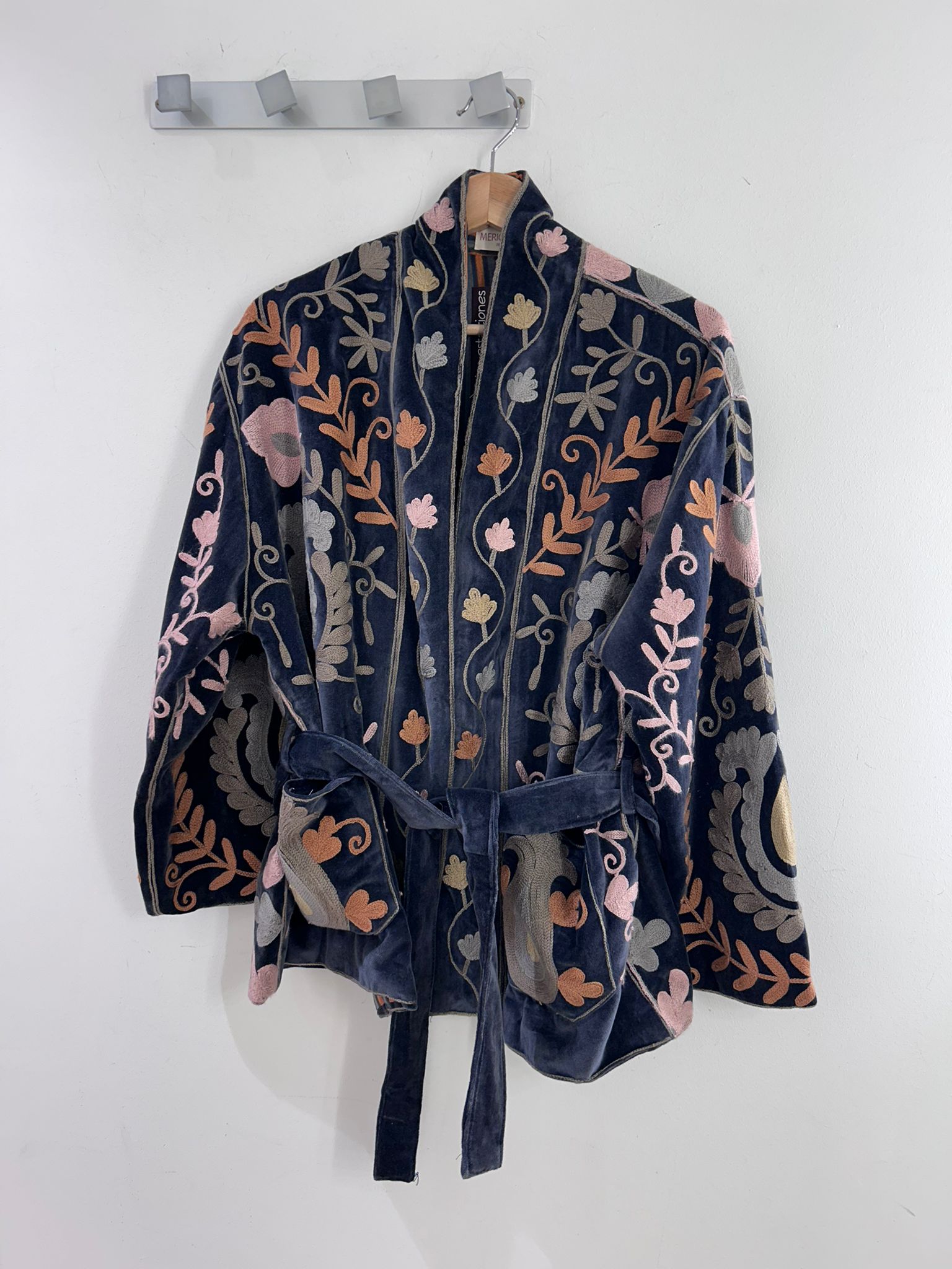 Chaqueta MÉRIDA bordada de terciopelo azul