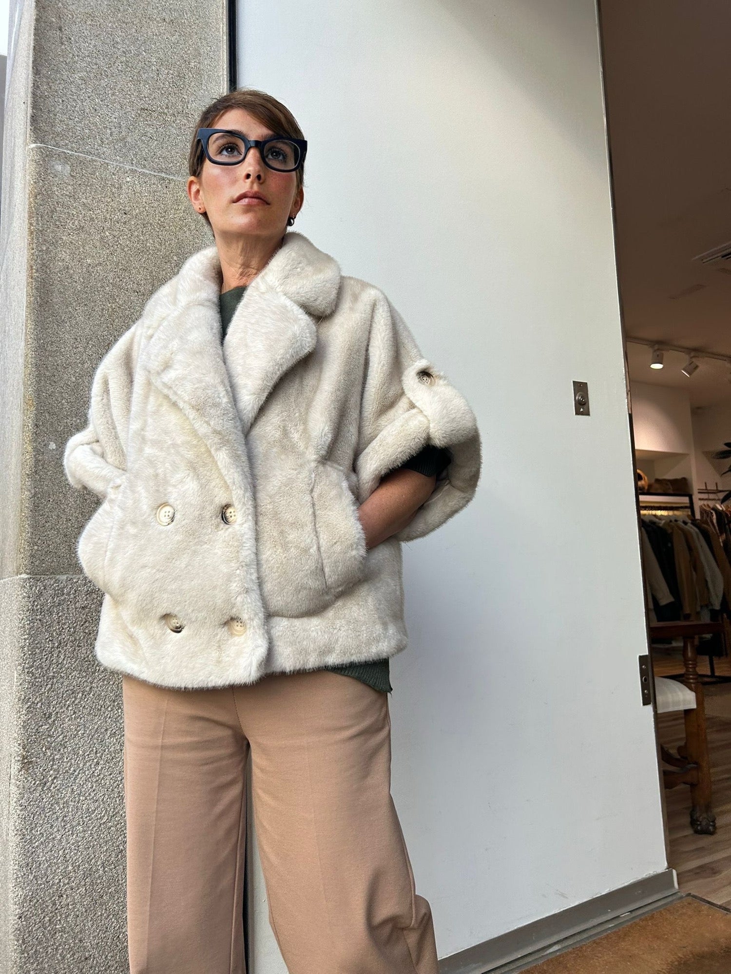 Abrigo ZURIÑE corto de pelo abotonado beige
