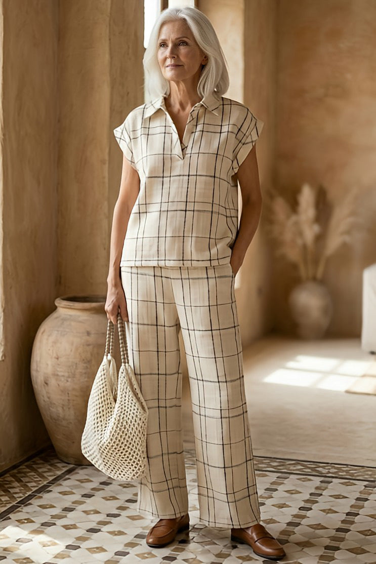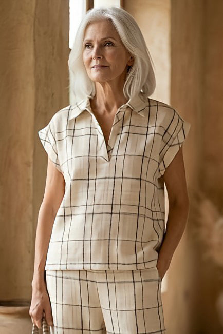 Blusa GIRDA a cuadros beige y negro