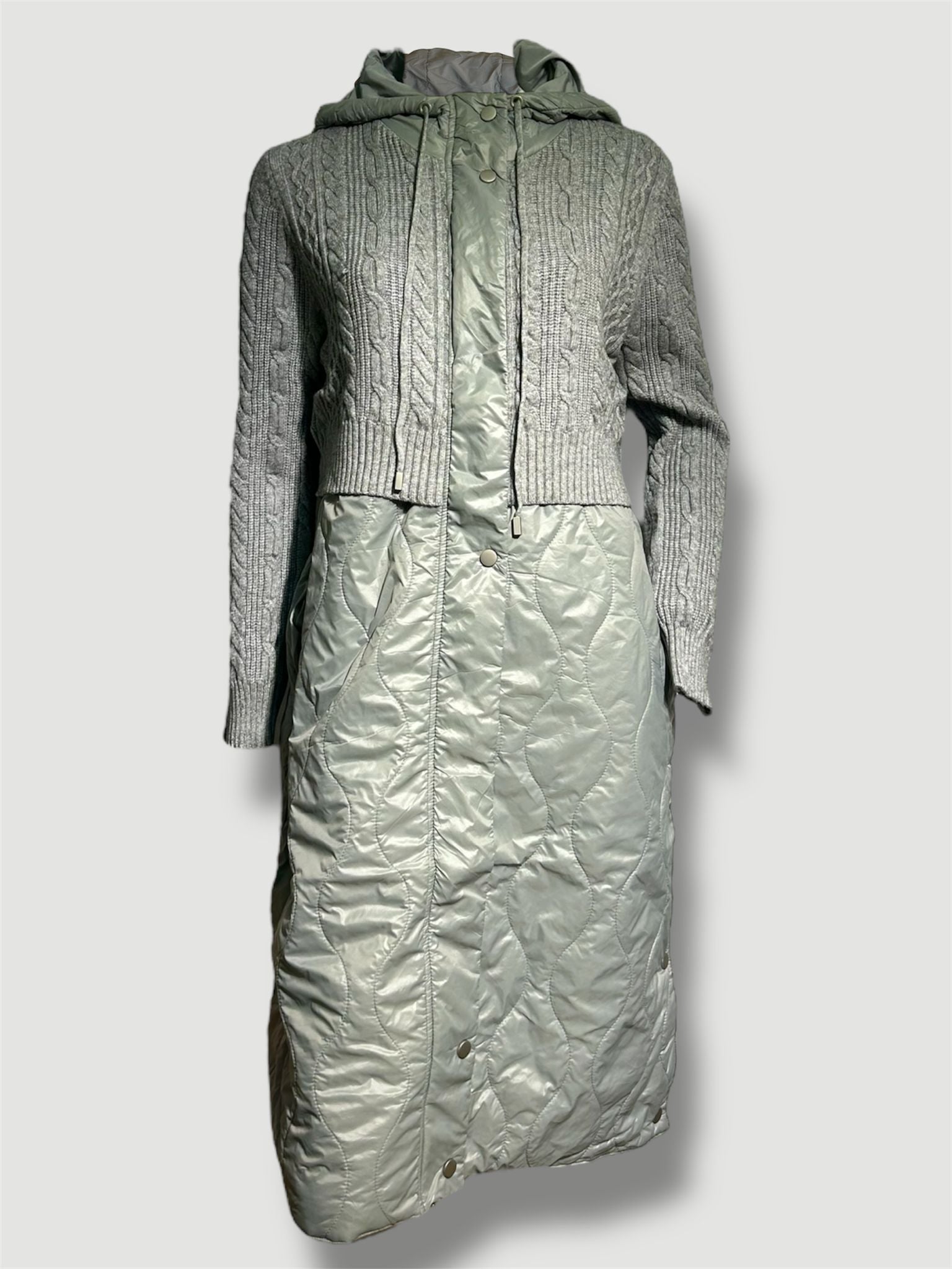 Abrigo ROBINA punto largo con acolchado capucha gris