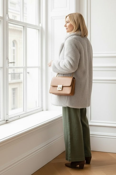 Abrigo SHELMA midi de pelo gris perla