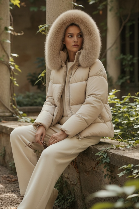 Guateado LILITH corto capucha pelo extraible champán