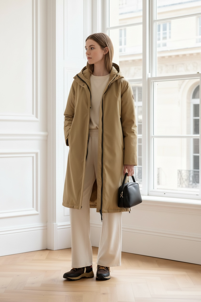 Parka CHER larga acolchada camel