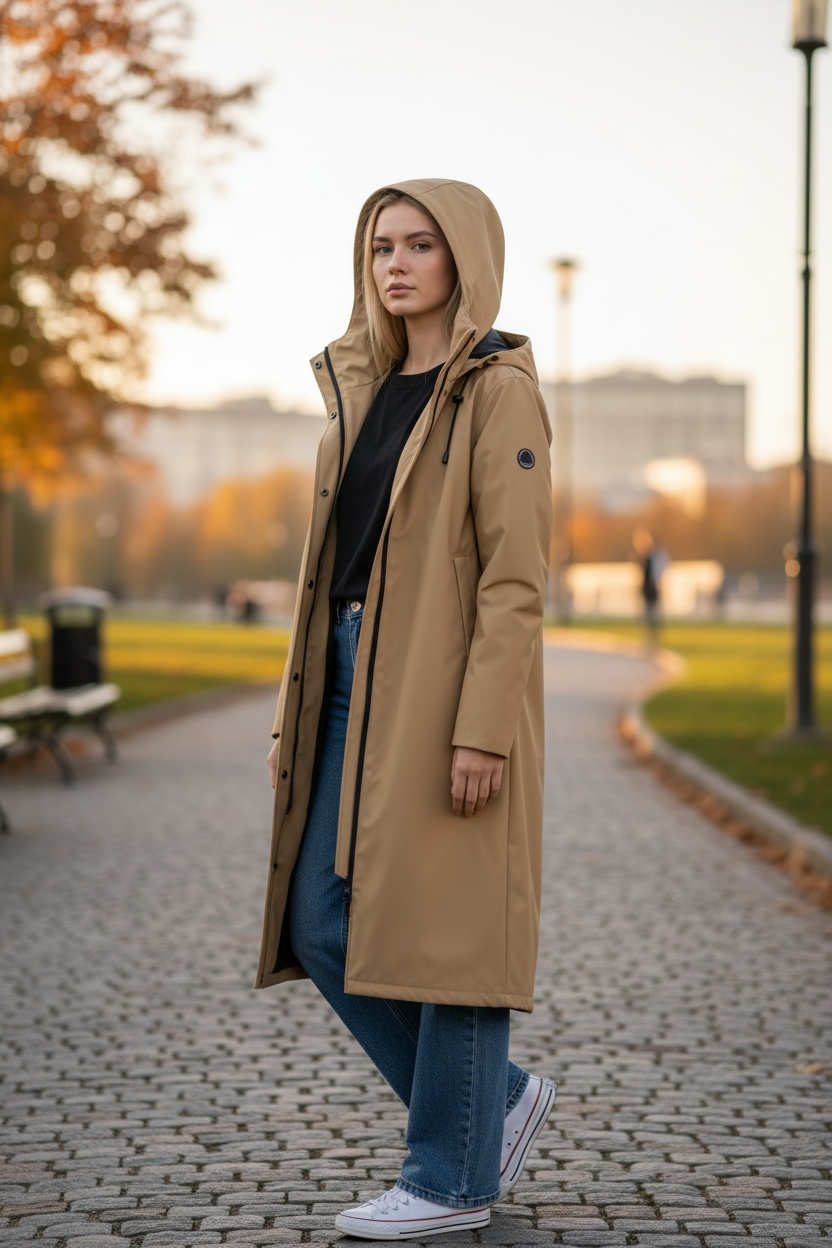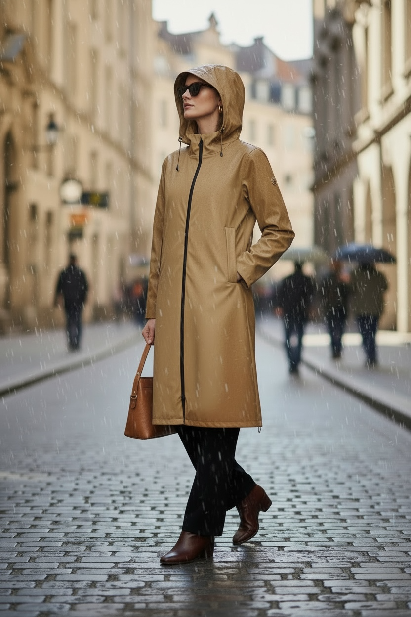 Cremalleras impermeables laterales con solapa interior y detalles reflectantes.