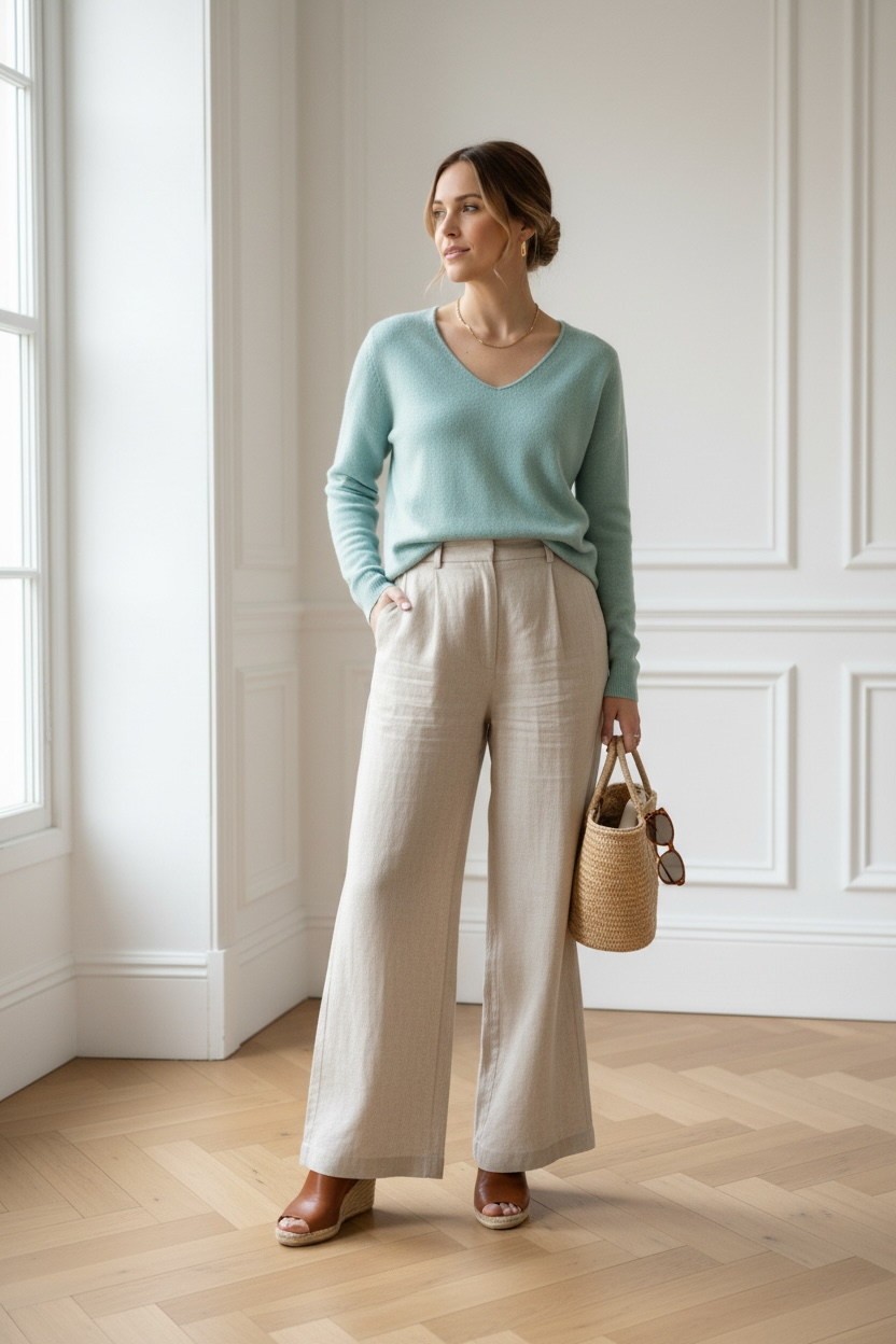 Jersey LYN básico de cuello pico cielo
