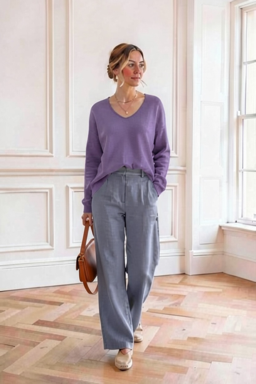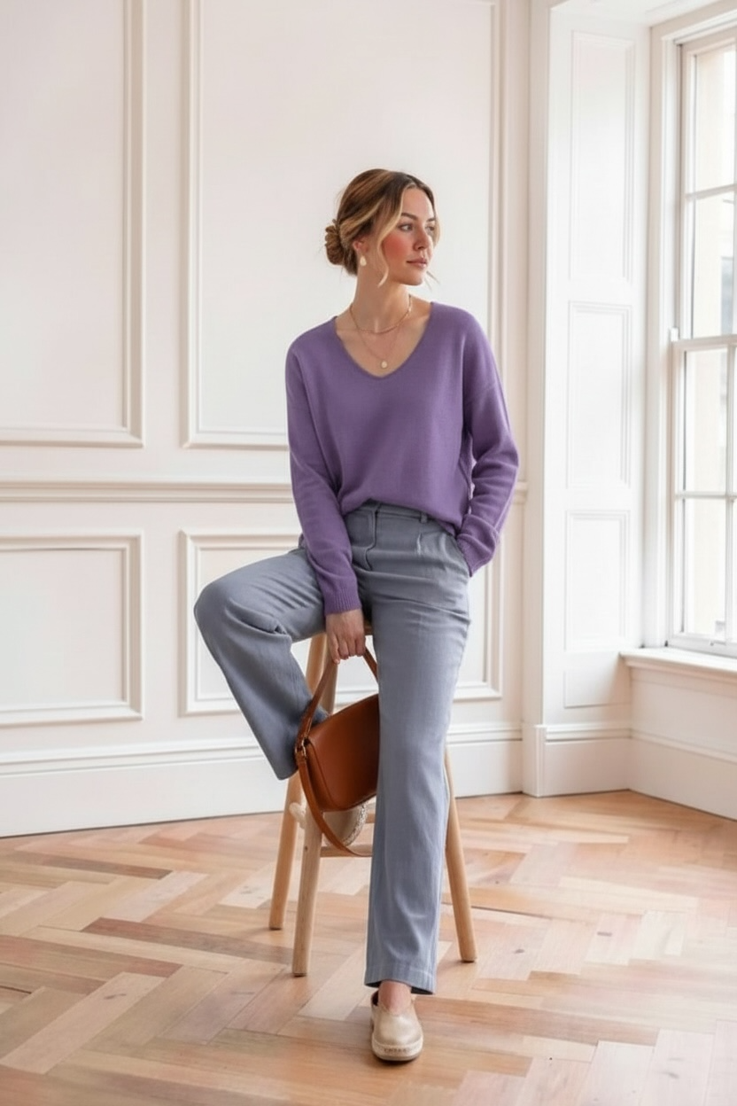 Jersey LYN básico de cuello pico lila