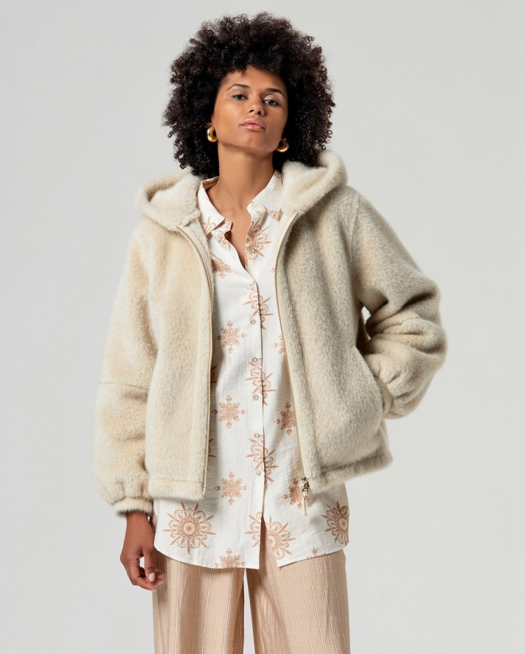 Chaqueta BOSNIA pelo corto capucha beige