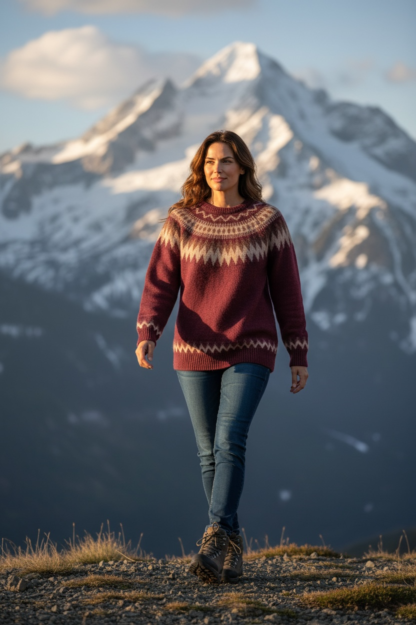Jersey ALÍSEA con estampado invernal granate